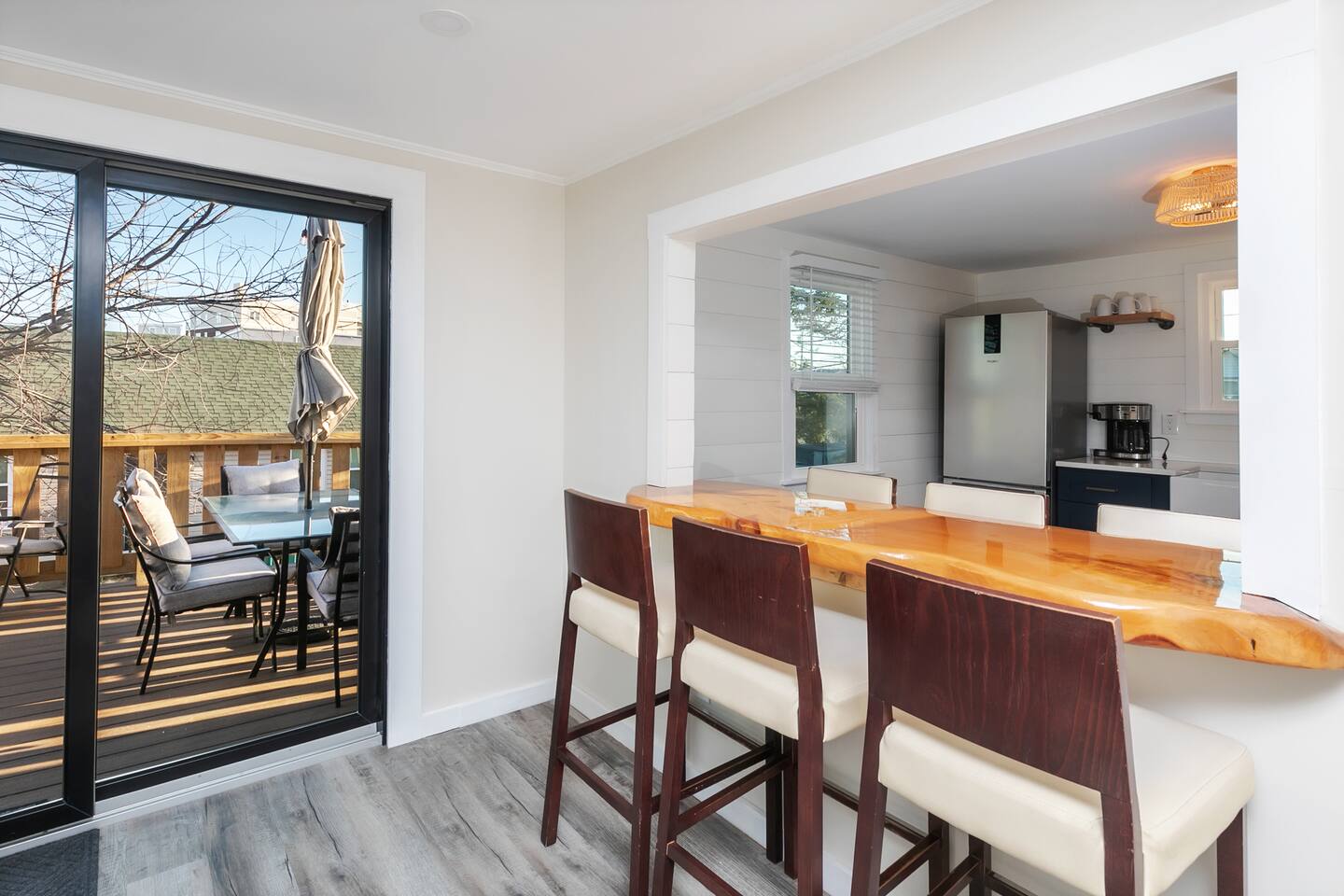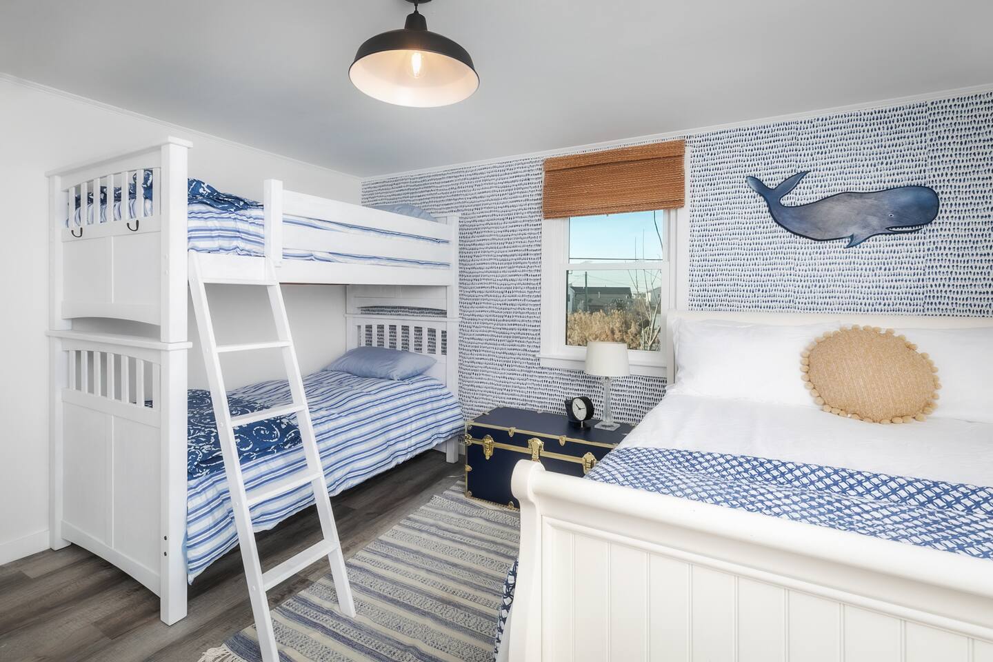 Only steps to the Post 12 lifeguard chair, a dream for Nudd Ave enthusiasts who love this street for its quiet location, friendly neighbors, yards, and short walk to all the action. Recently renovated from top to bottom, this place was optimized for guests' comfort and an upgrade to the typical Hampton cottage. The professionally cleaned unit with two bedrooms that sleep 6 total, a large deck, and high-end coastal decor, you will want to reserve a spot in this new rental!