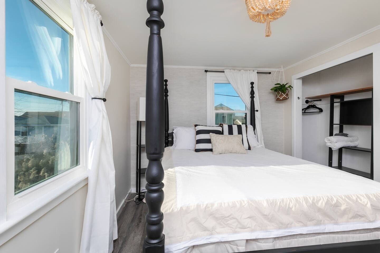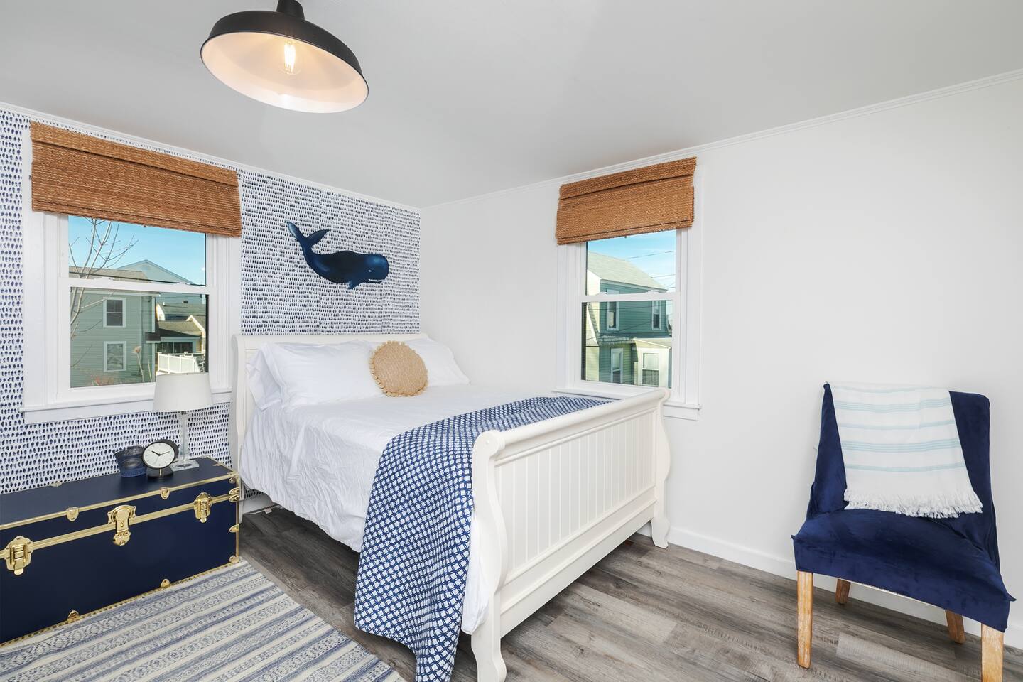The neighborhood is a family-friendly street that consists of a mix of rentals and residents. Unlike many parts of the beach, Nudd Ave offers ample parking, grass, and trees but is only a 2-minute walk to the beach and the top of the boardwalk. Once guests arrive they can get to all the action on foot including restaurants, shops, and nightlife.